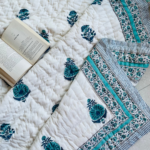 Elevate your bedding ensemble with our Premium Cotton Block Print Quilt Ensemble. Crafted from premium cotton, this ensemble includes a quilt featuring exquisite block print designs, offering both comfort and style for a luxurious sleeping experience.